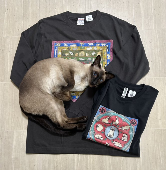 私の作品を使ったTシャツやマグカップ、スカーフなどを扱っています。店舗では扱っていないアイテムがほとんど。気になったら今すぐアクセス!