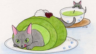 今月の絵「抹茶ロール」/個展「めぐる」のおしらせ