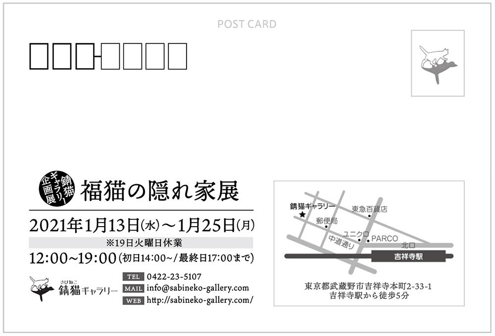 年明け1/13~25は、東京・吉祥寺の錆猫ギャラリーさまでの企画展「福猫の隠れ家」に参加します。