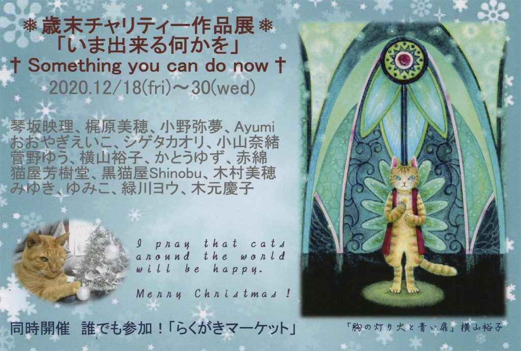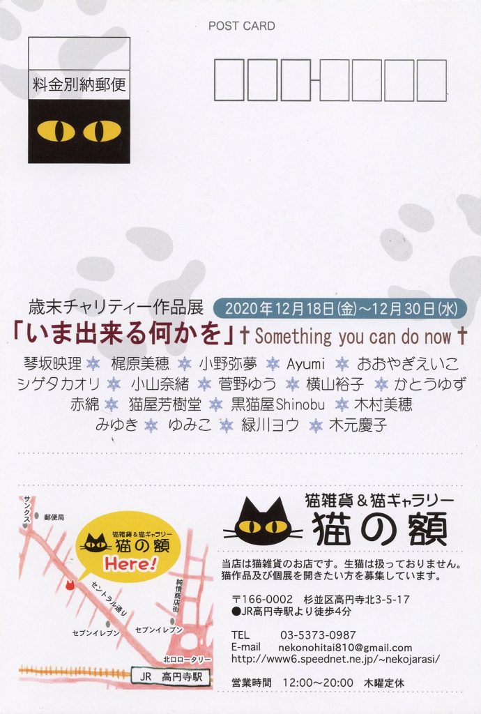 12/18~30、東京・高円寺の猫の額さまでの企画展「いま出来る何かを」参加します。