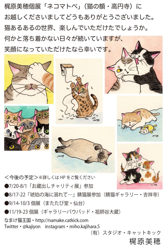 個展「ネコマトペ」終了しました/チャリティ展のお知らせ