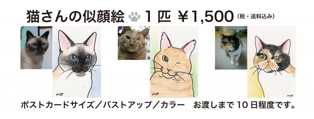 お馴染みの猫さま似顔絵は、豆色紙バージョンも登場!