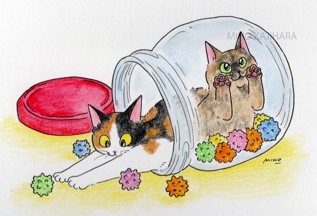 3月はどうしてもおんなのこイメージで三毛猫ちゃん描きがちです。