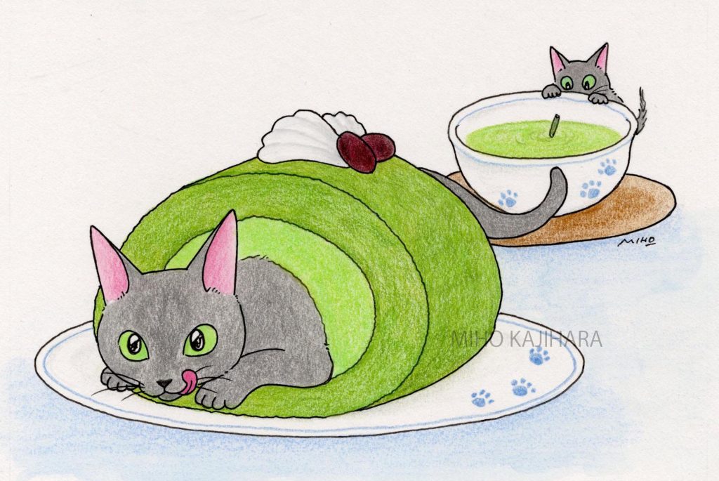 今月の絵「抹茶ロール」/個展「めぐる」のおしらせ