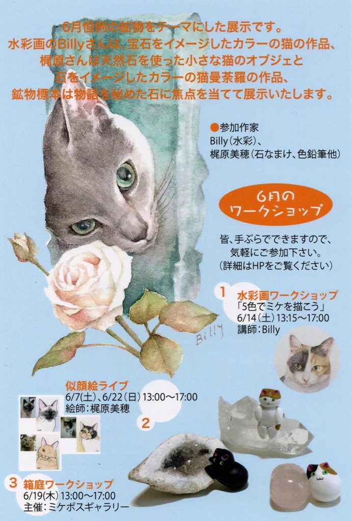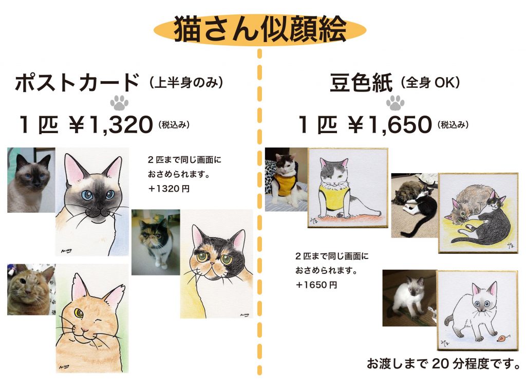 6/7(土)、6/22(日)13:00~17:00 猫さん似顔絵実演します。