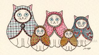 今月の絵「猫マトリョーシカ」/猫駄楽毛展参加中