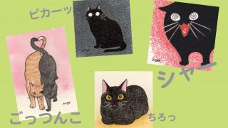 今月は黒猫さんです。 なぜかというと、27日から個展が始まる猫の額さんにはラブリーな黒猫・レイラさんがいるからです! ごっつんこされてる茶トラさんは、…