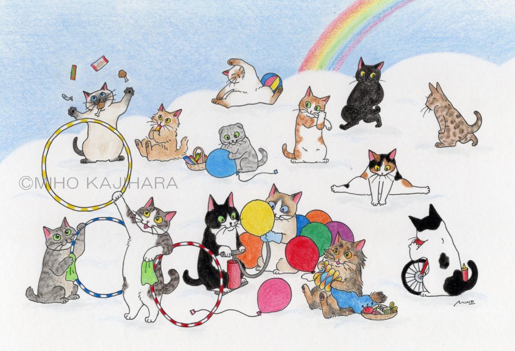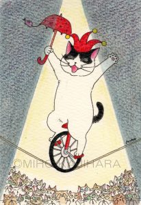 2021-07-01 / 最終更新日時 : 2021-07-01 梶原美穂 今月の絵 今月の絵「虹の橋サーカス団舞台裏」 もうすぐ夏休み。 虹の橋サーカス団のみなさんも準備に余念がありません。 それぞれ自分の得意技の練習をしたり、道具のお手入れをしたりしているんですよ。 本番を迎えた猫たちの活躍ぶりがこちら。 どの子がどの子かわかりますか? FacebookXCopy コメントを残す コメントをキャンセルメールアドレスが公開されることはありません。 ※ が付いている欄は必須項目ですコメント ※ 名前 ※ メール ※ サイト 次回のコメントで使用するためブラウザーに自分の名前、メールアドレス、サイトを保存する。 上に表示された文字を入力してください。 Δ