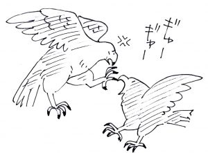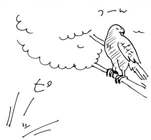 飼育員さんの腕から腕へ、合図にあわせて飛ぶはずだったハリスホーク、追い風に煽られて木の上まで行っちゃて、いくら呼んでも帰ってきやしないw