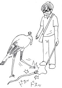 おもちゃの蛇に蹴りを入れまくって迫力の狩の実演してくれます。