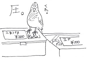 インコがいっぱいいるコーナーでは、鳥の圧に負けてまんまと餌を購入。