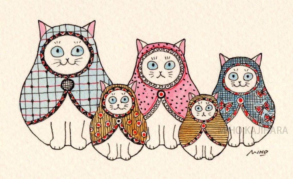 今月の絵「猫マトリョーシカ」/猫駄楽毛展参加中