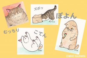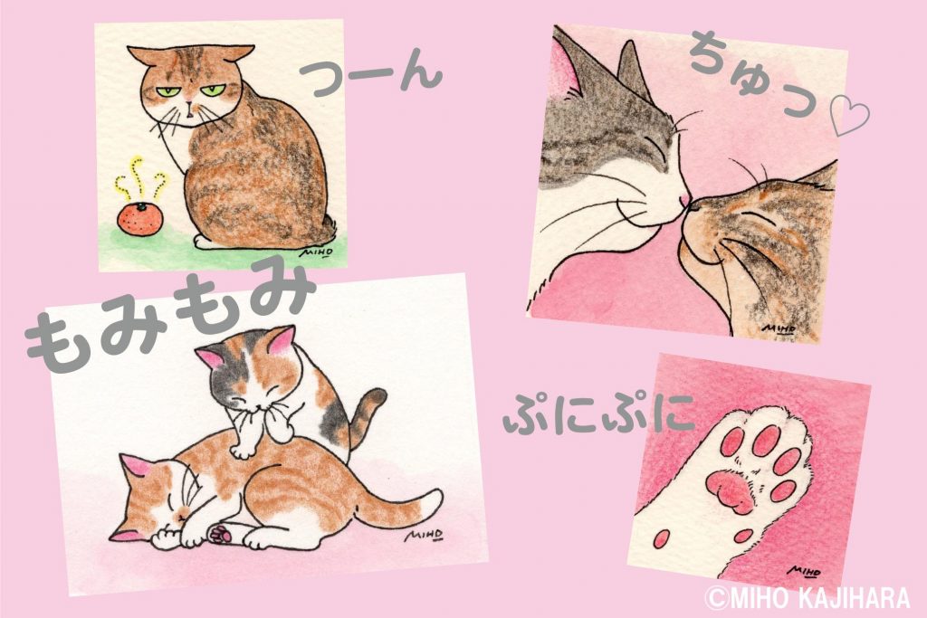 桃の節句がある3月は、女子猫集合ということでミケネコさんとサビネコさんがメインのネコマトペです。