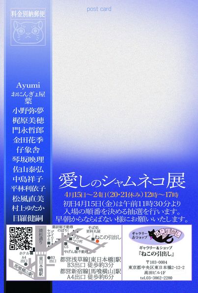 会場 ギャラリー&ショップ「ねこの引出し」 https://www.nekonohikidashi.com