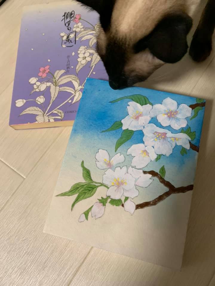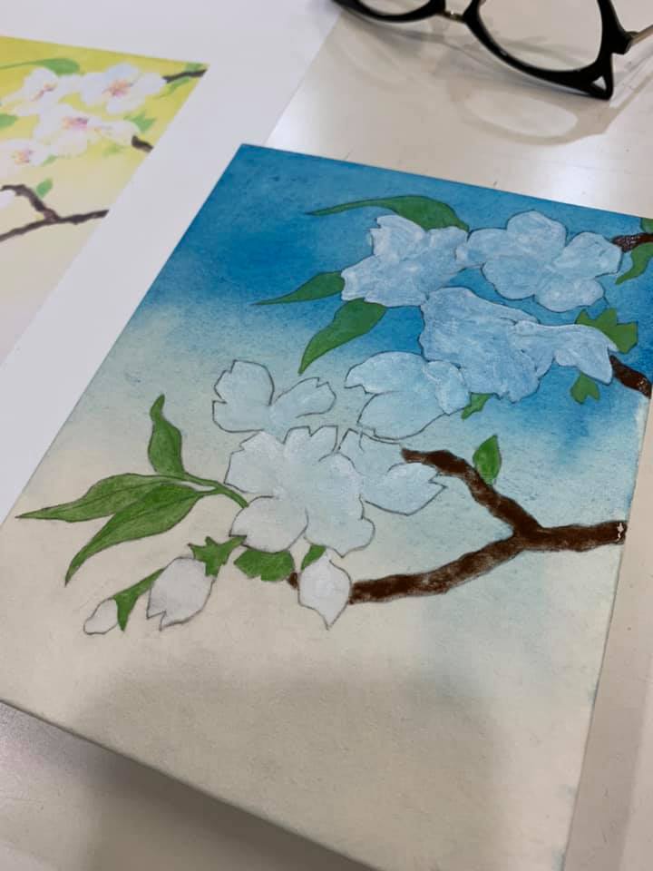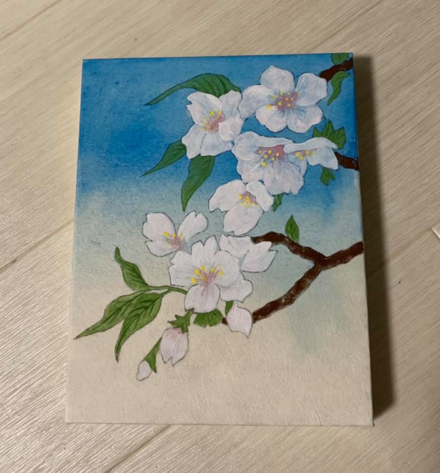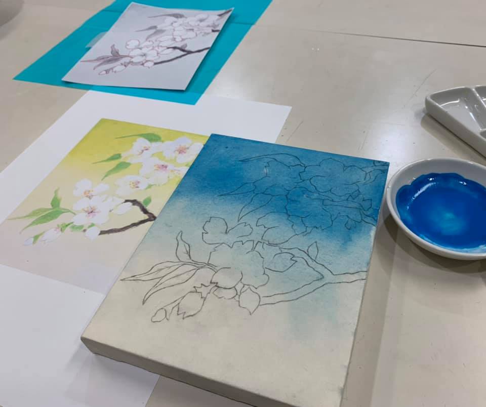 今回習ったことを取り入れつつ、日本画風味のアクリル画にも挑戦してみます!