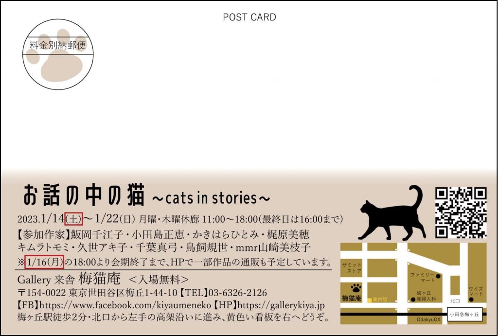 ブログでのご報告遅くなってしまいましたが、企画展「お話の中の猫」展(梅猫庵)、開催中です。