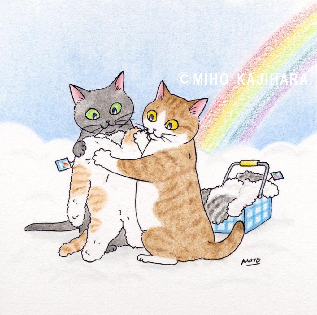 10/1~11/2、京都・ギャラリー幹さまで開催中の「猫と熊猫展」にて虹の橋シリーズのプリント額、カレンダー、ポストカードなど展示販売中です。