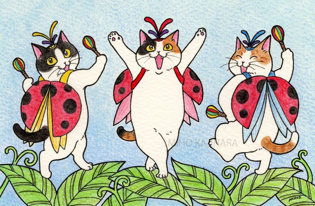 ご陽気にサンバを踊ってるてんとう虫コスプレの猫たち、ある年代以上の方には通じるんですが、若い方々には伝わらないのね・・・